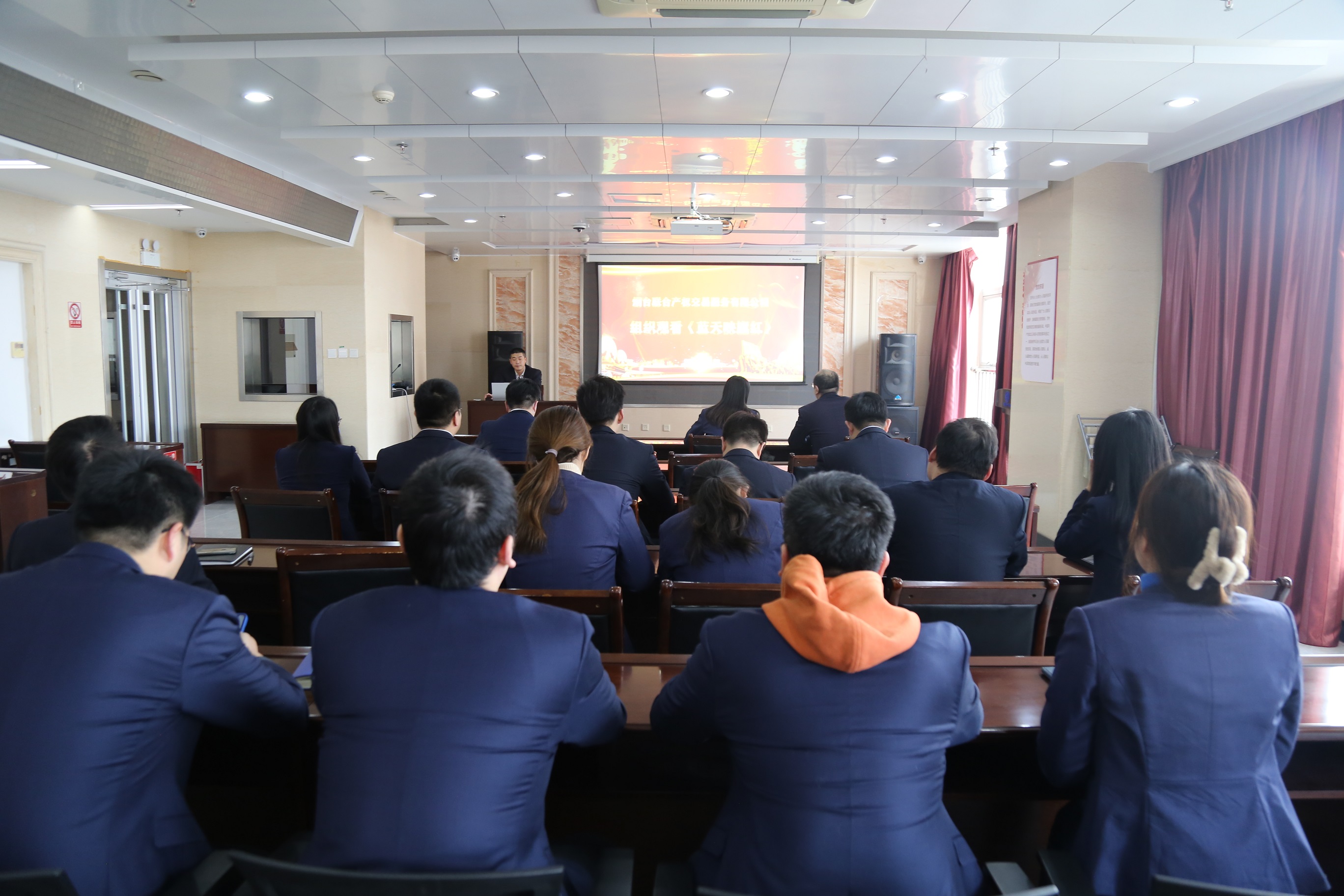 2月10日下午,聯(lián)合產(chǎn)權(quán)黨支部組織全體干部職工集中觀看《藍(lán)天映旗紅》電視片,集團(tuán)黨群部派人列席指導(dǎo)會議。