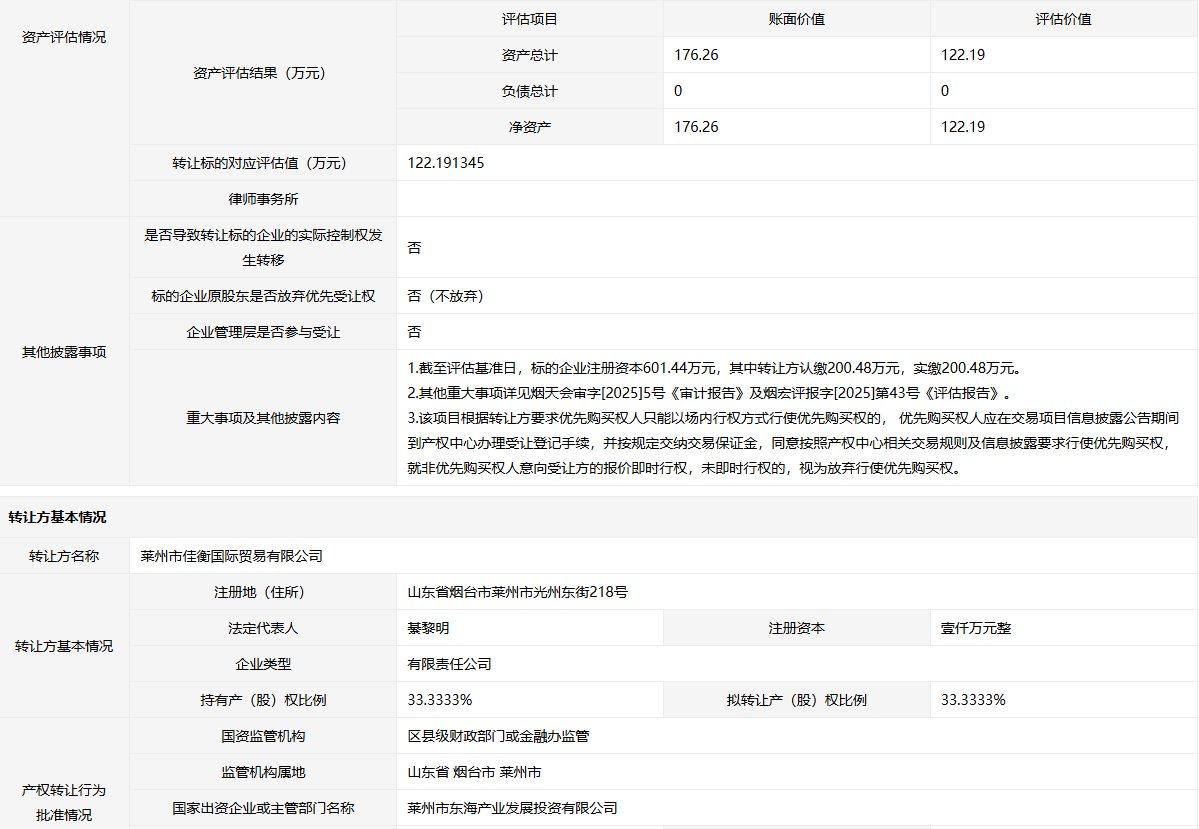 萊州市海之運石油化工有限公司33.3333%國有股權(quán)