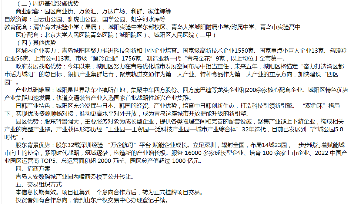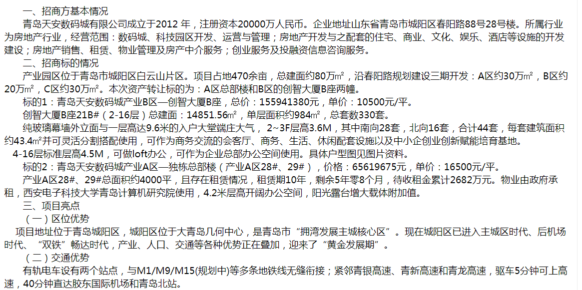 青島天安數(shù)碼城產(chǎn)業(yè)園商務樓宇轉讓